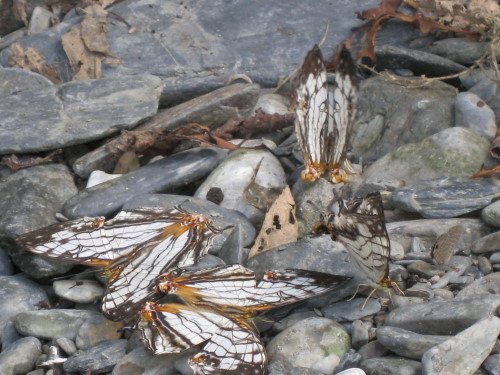 今年暑假到宜蘭的新寮瀑布,看到好幾隻的石牆蝶,在溪邊的石頭堆上吸
