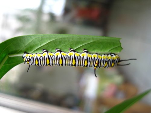 樺斑蝶的幼蟲每天不停的吃,愈長愈大,已經變得肥肥胖胖
